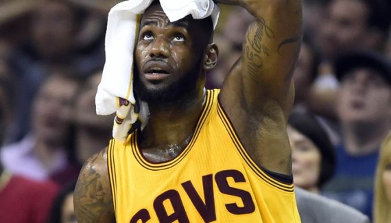 Exclu du cinq de départ des Warriors, Andrew Bogut a très peu joué cette nuit, mais il a eu le temps de se faire remarquer en envoyant LeBron James derrière les panneaux, provoquant cette blessure à la tête.