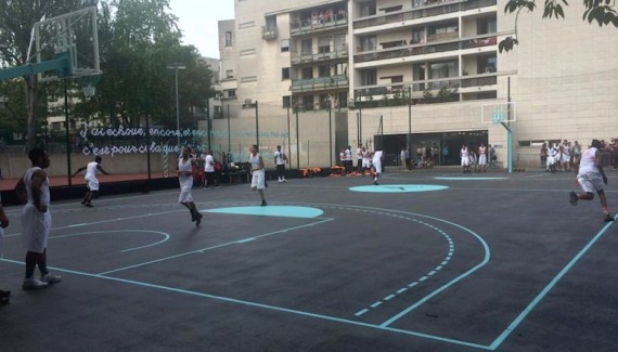 Après avoir célébré les 30 ans de la marque et avant d’aller assister aux finales du Quai 54, Michael Jordan s’est rendu dans 20e arrondissement de Paris pour l’inauguration d’un playground.