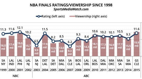 Depuis cette date, le record était détenu par les Finals 2001 entre les Sixers et les Lakers avec 19 millions de téléspectateurs en moyenne.