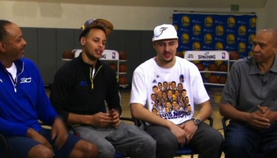 Parmi ces différentes rencontres, il y a cette récente interview de notre confrère d’ESPN, Marc Stein, qui a non seulement interrogé les héros fatigués, Stephen Curry et Klay Thompson, mais également leurs fiers paternels, Dell et Mychal. On y apprend notamment que c’est la maman de Dell et donc la grand-mère de Steph qui a, la première, couronné le meneur comme le meilleur des Curry, quand Steph entrait à la fac.