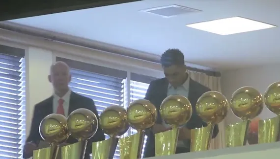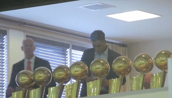Devant lui, 10 trophées de champions NBA. Ceux glanés depuis 1980 par Jerry Buss. Forcément, le gamin de 19 ans est impressionné.