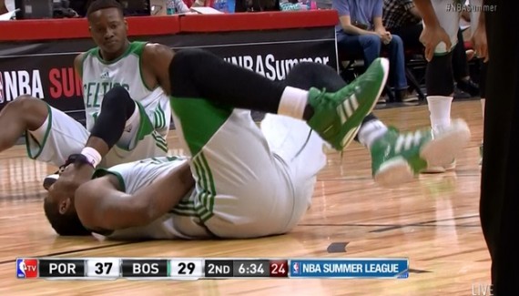 Le meneur des Celtics hurle de douleur, mais selon un membre du staff des Celtics, il n’y a rien de cassé, et Smart est d’ailleurs revenu sur le banc assister à la victoire des Celtics sur les Blazers de Noah Vonleh. Les médecins lui ont tout de même posé cinq points de suture…