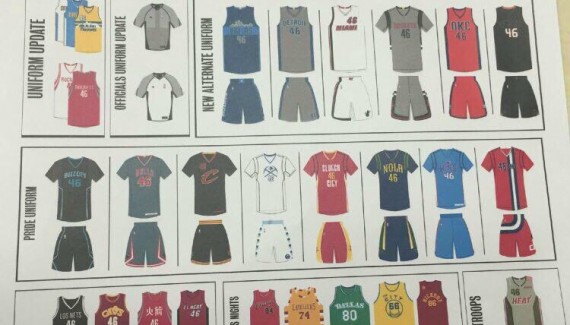 Un confrère du Tide Water News a posté sur Reddit et Twitter une photo d’une plaquette où l’on distingue tous les maillots des franchises NBA pour la saison 2015/16. On peut y voir les nouveaux maillots des franchises qui ont changé de logos et de tenues (Bucks, Clippers, Sixers…), mais aussi les nouveaux maillots “alternate” (Mavs, Blazers…).