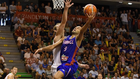 Comme à Nancy deux jours plus tôt, Vincent Collet lance son cinq classique avec les trois anciens Spurs (Parker, Diaw, De Colo) accompagnés de Gobert et Batum. Ce soir, ce sont Thomas Heurtel (mal au dos), Mam Jaiteh et Kim Tillie (repos) qui ne joueront pas. Mais la France ne manque pas pour autant son entrée en matière. Un 9-0 initial se transforme en 17-2. Les Russes sont rapidement dépassés face à un Boris Diaw au four et au moulin, déjà à 12 d’évaluation en premier quart. La Russie finit à 5/14 aux tirs, plus 6 ballons perdus et les Bleus sont déjà confortablement en tête (28-11).