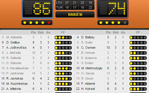 Côté turc, c’est encore à l’intérieur que l’essentiel des points a été marqué, avec Semih Erden (11 points, 5 rebonds) et Oguz Savas (13 points). Cedi Osman a ajouté 10 unités et Ersan Ilyasova a lui marqué 8 points.