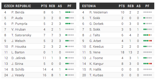 La République tchèque n’a pas eu à forcer pour venir à bout de la modeste Estonie. Avec 14 points pour le naturalisé Blake Schilb et un Jan Vesely qui compile 16 points et 8 rebonds, il n’a pas fallu longtemps aux Tchèques pour faire l’écart et dérouler durant toute la seconde mi-temps.
