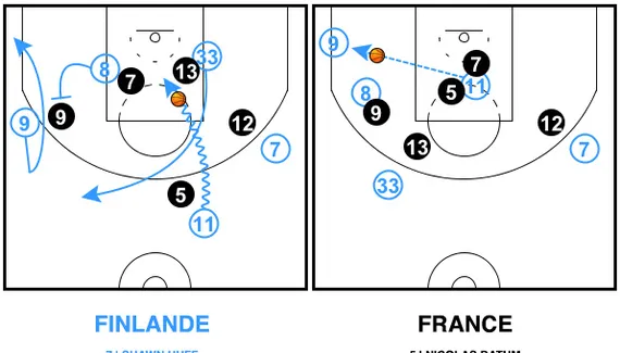 Et si les Finlandais n'ont inscrit que 8 de leurs 28 tirs de loin, ils ont pourtant eu beaucoup de bonnes positions. Comme durant la préparation, les Bleus ont ainsi eu beaucoup de mal à couvrir les corners. Dans un système défensif légèrement différent par rapport aux années précédentes, puisque la dissuasion de Rudy Gobert leur permet d'orienter les extérieurs vers le pivot d'Utah, ils doivent par contre faire davantage attention aux mouvements en périphérie.