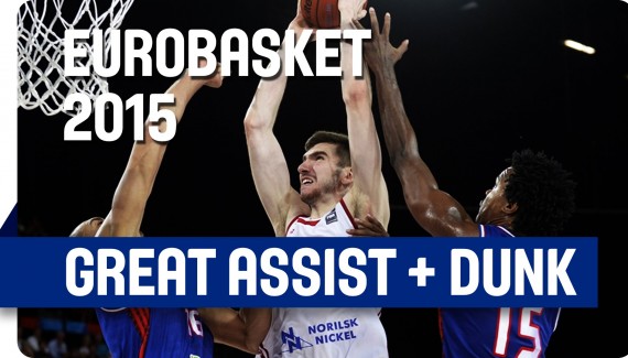 C’est l’un des plus gros dunks de la compétition, et il est signé du jeune Andrei Desiatnikov qui écrase un dunk à deux mains sur les 2m16 de Rudy Gobert. La passe de Dmitry Khvostov est superbe.