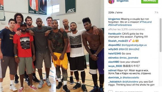 Comme prévu, LeBron James a réuni ses coéquipiers du côté de Miami pour un mini-stage, et il a posté sur Instagram une photo du groupe. A 15 jours de la reprise, la star de Cleveland n’oublie pas les quelques absents (Tristan Thompson, Matthew Dellavedova, Timofey Mozgov…), et on peut remarquer les présences des recrues, et que Kevin Love est en tenue.