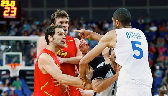 Les deux équipes sont donc qualifiées pour les Jeux Olympiques et une année plus tard, ils se retrouvent une nouvelle fois au stade des quarts de finale. Scénario incroyable, une tension palpable : depuis des années, c'est la première fois que la France fait jeu égal avec la grande Espagne. Devants pendant toute la rencontre, les coéquipiers de Tony Parker vont craquer sur la fin et l'Espagne, plus maligne, empoche une nouvelle victoire face aux tricolores. Nicolas Batum va en venir aux mains avec Juan Carlos Navarro puis un Jose Calderon souriant d'insolence et de condescendance.