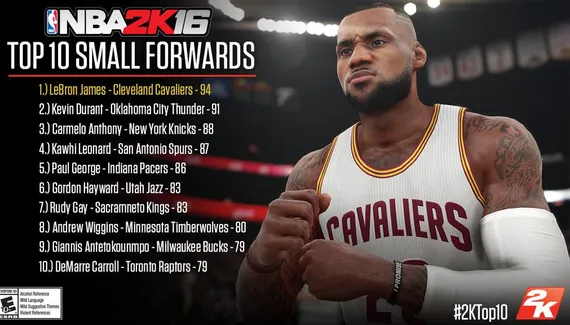 Suite des Top 10, poste par poste, dévoilés chaque jour par 2K Sports avec les dix meilleurs ailiers dans NBA 2K16. Sans surprise, on retrouve LeBron James en n°1 avec 94, meilleure note du jeu.