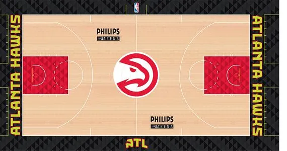 La tendance «fluo» des nouveaux maillots des Hawks se retrouve sur leur nouveau parquet. Les dirigeants parlent ainsi de «Volt Green» pour définir ce vert ou plutôt jaune fluo, et de Gris granite pour ce gris utilisé pour les lignes de fond et de touche.