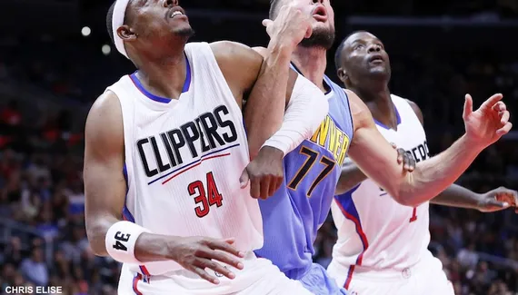 /https%3A%2F%2Fwww.basketusa.com%2Fapp%2Fuploads%2F2015%2F10%2Flauvergne-clippers.jpg) Sur la lancée de son bel Euro, Joffrey Lauvergne a réussi ses débuts avec les Nuggets, compilant 16 pts et 11 rbds. Le problème, c'est que le Français, qui finira la tête en sang sur un choc avec Luc Richard Mbah a Moute, était un peu seul à surnager face à des Clippers en roue libre.