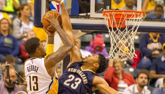 Paul George est bel et bien le nouvel ailier fort des Pacers, et il va vraiment poser des problèmes à ses adversaires… C’est ce qu’on a constaté cette nuit face aux Pelicans. Certes, les coéquipiers d’Anthony Davis (18 pts, 8 rbds) se sont imposés (110-105), mais on retiendra évidemment le nouveau style de jeu d’Indiana avec beaucoup de tirs extérieurs (35 tirs à 3-points !), une forte domination au rebond (62 prises) ou encore de belles qualités athlétiques (16 contres).