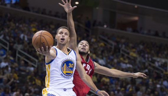 C’est avant tout en défense que les Californiens ont impressionné. Pour une reprise, Golden State a montré une intensité rare au grand dam de Raptors souvent désabusés, comme l’attestent leurs multiples violations des 24 secondes. Titulaire, Cory Joseph en a fait les frais (7 pts à 2/6 en 20 min), lui-même malmené par un Stephen Curry accrocheur et finalement sanctionné par six fautes pour son surplus d’agressivité. Sorti au milieu du 3e quart-temps, le MVP en titre a néanmoins eu le temps de faire le spectacle avec quelques fulgurances dont il a le secret (14 pts à 3/5 à 3-pts, 4 pds en 19 min). Aidé par Klay Thompson saignant d’entrée de jeu (14 pts dont 10 à la mi-temps), Stephen Curry a donné le ton.