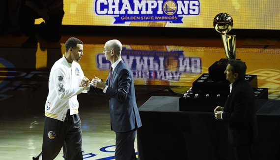 Désormais entraîneur de New Orleans, Alvin Gentry a été honoré avec son ancienne équipe. Après un discours du MVP, qui n’a d’ailleurs pas manqué de saluer les fans mais aussi ses anciens camarades (David Lee, Justin Holiday et Ognjen Kuzmic), les joueurs de la Baie ont pu voir leur bannière de champion apparaître au plafond de l’Oracle Arena.