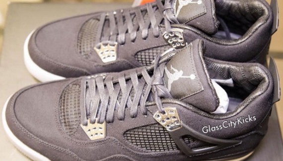 C’est encore le cas avec cette Eminem x Carhartt x Air Jordan 4. La tige est en canvas, avec des éléments visuels qui rendent hommage au Slim Shady sur le talon.