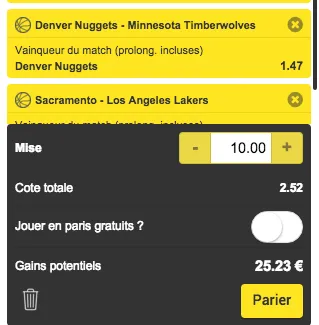 Pour leurs débuts à domicile, les Cavs devraient logiquement s’imposer face au Heat. On combine avec les victoires prévisibles des Nuggets face aux Wolves, et des Kings face aux Lakers, et on obtient une très jolie Cote boostée.