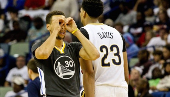 Pour être honnête, il y avait de quoi être inquiet avant ces retrouvailles entre les Warriors et leurs adversaires du premier tour des Play-offs 2015. Avec les blessures de Tyreke Evans, Norris Cole, sans oublier le cas Jrue Holiday, on ne donnait pas cher de ces Pelicans face à la meilleure propulsion arrière de la NBA. Pour ne rien arranger (quoique), Kendrick Perkins se démet l’épaule en début de partie et doit rejoindre le vestiaire, puis Eric Gordon est rapidement sanctionné par les fautes. On se dit que la soirée pourrait être longue, surtout vu le début de match tonitruant de Steph’ Curry, complètement possédé en cette soirée Halloween. Les tentatives du fiston de Dell trouvent à chaque fois le filet, comme son shoot venu d’une autre planète face à Anthony Davis. Malgré la maladresse de ce dernier (3/11 au tir en première mi-temps), New Orleans arrive à tenir la distance dans ce match d’attaque et ne pointe qu’à -3 après 12 minutes suite à un ultime 3 points de Ryan Anderson (31-28).