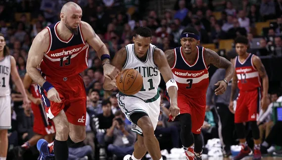 /https%3A%2F%2Fwww.basketusa.com%2Fapp%2Fuploads%2F2015%2F11%2Fturner-wizards.jpg) Battus trois fois lors des quatre premiers matchs de la saison, les Celtics se sont parfaitement relancés vendredi soir dans leur antre du TD Garden, lors de la venue des Wizards. Portés par une attaque de feu, les hommes de Brad Stevens ont fait parler la poudre pour s'imposer 118-98. Les Celtics ont réalisé un match plein pendant 36 minutes avant de dérouler dans le dernier quart-temps, et ont produit un basket de très haut niveau aussi bien en attaque qu'en défense. Jared Sullinger termine meilleur marqueur de l'équipe avec 21 points et 8 rebonds, épaulé de Kelly Olynyk, 19 points.