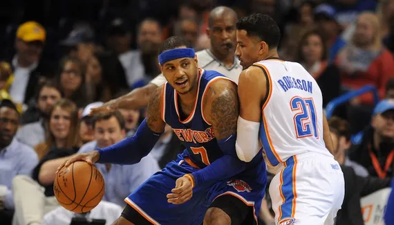 Le Thunder l'a attendue, mais elle n'est jamais venue. Les Knicks se sont eux appuyés sur une adresse extérieure insolente tout au long de la rencontre pour s'imposer 93-90 sur le parquet d'Oklahoma cette nuit (12/20 à 3pts). Pour résister aux assauts de Russell Westbrook et ce jusqu'à la dernière seconde (34 pts, 7 rbds, 7 pds), New-York a aussi pu compter sur un Carmelo Anthony en mode franchise player. Avec 26 points à 9/20 au tir, Melo a été présent dans les moments chauds, tirant profit de l'absence de Kevin Durant (ischios). Ses deux seuls lancer-francs manqués du match dans le méga money-time ont tout de même failli coûter cher aux Knicks, qui retrouvent un bilan positif (7-6) après ce 3e succès de rang.