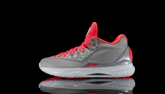 Pour l’occasion, la chaussure de Dwyane Wade reçoit une tige grise entièrement réfléchissante, avec des accents rouges. À l’intérieur, un gant blanc est là pour rappeler le premier article vendu par Li-Ning.