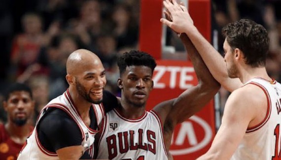 Le 16 décembre dernier le matin de la réception des Grizzlies au United Center, Pau Gasol a pris Jimmy Butler à part. Les yeux dans les yeux, le Catalan a courtoisement relayé le sentiment général d’un vestiaire en manque de patron : dans la nouvelle hiérarchie interne, le nouveau boss était sommé de montrer plus de leadership, sur et en dehors du parquet. Auto-proclamé franchise player d’une équipe qui a déjà tourné la page du D-Rose MVP, Jimmy Bucket détient les clefs de l’abattoir. Quand il passe à côté et ne tire pas ses coéquipiers vers le haut, les Taureaux se font pendre au piquet. Quand il assume son rôle, Chicago parvient à se sortir du piège des Pacers pour s’imposer à une seconde de la fin de la prolongation. Merci qui ?