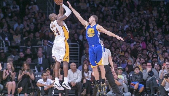 Avec trente deux matchs joués à l’Oracle Arena, Kobe Bryant est l’adversaire que les Warriors ont le plus rencontré à domicile depuis son arrivée dans la ligue, en 1996. De tous ces derbys, le “Black Mamba” garde un souvenir précis de certains duels de folie.