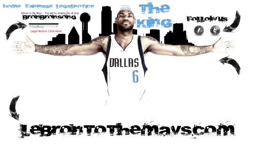 Un super joli site avec en page d’accueil une photo géante de LeBron James avec le maillot numéro 6 des Mavs (oui, malheureusement pour comprendre il faut avoir vu un des premiers épisodes de la saison qui parle des envie de LeBron de changer de numéro, lui qui joue habituellement avec le 23) et plein de super fonctions pour que les fans puissent crier tout leur amour à LeBron et lui donner l’envie de venir à Dallas. Par exemple, ils peuvent discuter dans un salon intitulé la “Lebronversation”. Ils peuvent également envoyer leurs meilleurs montages photo et vidéo de LeBron en Mavs. Ils peuvent également tous chanter en même temps la chanson LeBron to the Mavs : “Come on LeBron, put your Mavericks jersey on…”