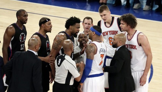 Revenus à -10 à l’issue du 3e quart, les Knicks remettent la pression sur Paul qui doit enchaîner deux jump shots et un 3 points pour repousser le danger. Anthony réplique, mais le meneur ne s’arrête pas là, et renvoie Jordan dans les étoiles, pour sa 7e réalisation du match ! 52-64, la tension est palpable, les New-yorkais sont à deux doigts de lâcher et Robin Lopez est le premier à craquer. Le pivot de Derek Fisher profite d’un combat au rebond pour se faire justice sur Chris Paul et déclencher une mini-bagarre.