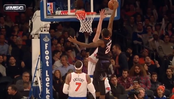On a aussi du poster avec Archie Goodwin sur les 2m21 de Kristaps Porzingis mais aussi Lance Stephenson sur Julius Randle.