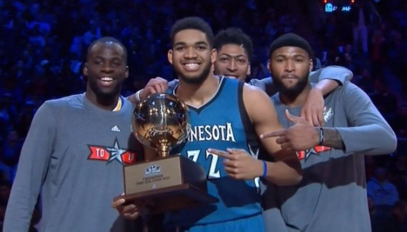Pour la première fois de l’histoire, la NBA avait invité quatre intérieurs à participer au Skills Challenge, autrefois surnommé le “concours des meneurs”. Répartis en deux tableaux, celui des “petits”, c’est à dire les purs meneurs et celui des “grands” avec des pivots et ailiers forts, les huit participants se sont affrontés en matchs à élimination directe : quart de finale, demi-finale avant la finale entre les vainqueurs de chaque tableau. Au final, il ne pouvait y avoir qu’un seul vainqueur et c’est Karl-Anthony Towns qui l’a emporté en battant Isaiah Thomas en finale. Une victoire pour le joueur des Timberwolves mais aussi pour tous les intérieurs de la ligue. Eh oui les pivots modernes peuvent aussi dribbler et dégainer derrière la ligne à 3-points !