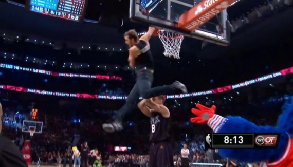 Considéré par beaucoup comme le meilleur dunkeur amateur, Jordan Kilganon a fait une apparition éclair lors du All-Star game. En jean, il a exécuté son célèbre “scorpion”, et apparemment, vu leurs réactions, les stars NBA n’avaient jamais entendu parler du garçon…