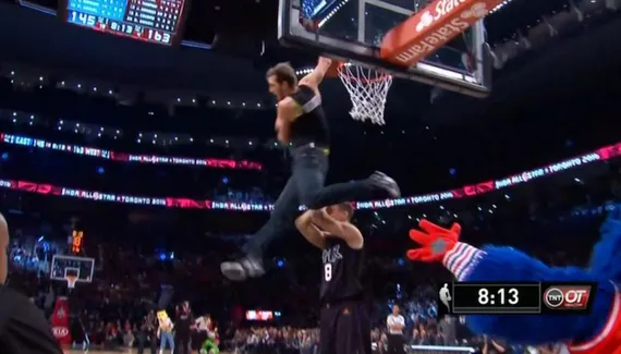 Considéré par beaucoup comme le meilleur dunkeur amateur, Jordan Kilganon a fait une apparition éclair lors du All-Star game. En jean, il a exécuté son célèbre “scorpion”, et apparemment, vu leurs réactions, les stars NBA n'avaient jamais entendu parler du garçon…