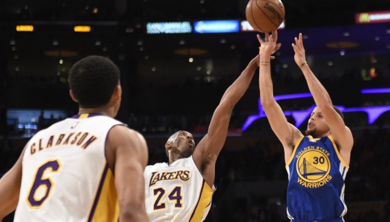 À 12h30 heure locale, ce match du dimanche a du mal à se lancer. Les deux équipes sont en panne d’adresse, Stephen Curry compris. Le MVP 2015 se rattrape sur les lignes de fond laissées libres par les Lakers. Kobe Bryant en galère, c’est Jordan Clarkson qui s’occupe du scoring, et les locaux passent même devant. Les douze premières minutes de jeu sur un rythme de sénateur, à tel point que même Marcelo Huertas donne l’impression d’avoir du gaz : 22-21 Los Angeles.