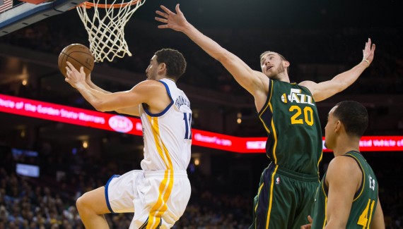Alors que Raul Neto et Joe Ingles se mettent en évidence, les pertes de balles continuent de saper les efforts du Jazz. La défense des Warriors ne laissent rien passer et leur jeu de passes donnent le tournis à leurs adversaires. Un 11-2, mené par Speights et Livingston, leur offre huit points d’avance (36-28). Utah s’accroche grâce à Trey Burke mais Golden State termine la mi-temps sur trois tirs primés, dont un nouveau tir du milieu du terrain au buzzer pour Stephen Curry (52-41) ! Cette saison, le MVP en titre compile un soyeux 5/13 sur les tirs à 12 mètres ou plus, soit 38.5% de réussite…