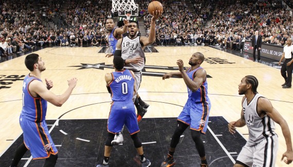 Les playoffs ne débutent que dans un mois et demi mais les Spurs et le Thunder nous en ont offert un avant-goût cette nuit au AT&T Center. Les Texans avaient à coeur de préserver leur invincibilité à domicile alors qu’Oklahoma City veut démontrer sa capacité à gagner contre les équipes les plus redoutables. Finalement, au terme d’un match disputé du début jusqu’à la fin, San Antonio remporte son 41e succès d’affilée à domicile (93-85) grâce aux 26 points de Kawhi Leonard et un nouveau gros match de LaMarcus Aldridge (24 pts, 9 rbds). Encore en tête de six points au début de l’ultime période, le Thunder peut s’en mordre les doigts mais les pertes de balle de Russell Westbrook (19 pts à 5/16, 9 bps) ont coûté très cher et la défense texane a su se mobiliser au meilleur moment.