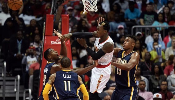Après un panier initial de Ian Mahinmi pour les Pacers, le rouleau-compresseur des Hawks se met immédiatement en marche avec un cinglant 16-0 pour prendre le large dès les premières minutes de la rencontre. Que ce soit dans la raquette ou en périphérie, les hommes de Mike Budenholzer se régalent face à une équipe d’Indiana visiblement fatiguée et peu combative. Myles Turner et Monta Ellis tentent de limiter la casse et l’écart se stabilise entre dix et quinze points. A la fin du premier quart-temps, Atlanta est logiquement en tête (30-17).