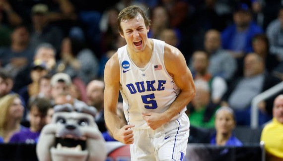 Après un début de match très serré entre deux équipes très concentrées (13-12 pour Yale à la 5e minute), Duke prend son envol grâce à l’adresse extérieure de Luke Kennard et de Grayson Allen. Peu à peu, les Blue Devils voient leur avance augmenter avec un Allen au sommet de sa forme. Le joueur de Duke inscrit 22 points rien que dans la première période et l’avance de son équipe culmine à vingt-sept points (46-19, 18e). On se dit alors que le match est plié et que les champions en titre vont pouvoir tranquillement gérer leur énorme avance en deuxième mi-temps avant de préparer leur Sweet 16 la semaine prochaine à Anaheim. Grossière erreur.