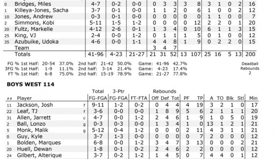 Du côté de l’Est, Jayson Tatum, lui aussi futur joueur de Duke, termine avec 18 points tandis que Bam Adebayo ajoute 16 points et 12 rebonds. Lonzo Ball, meilleur joueur de l’année en High School, a délivré 13 passes décisives pour l’Ouest. Il portera les couleurs d’UCLA dès l’an prochain.