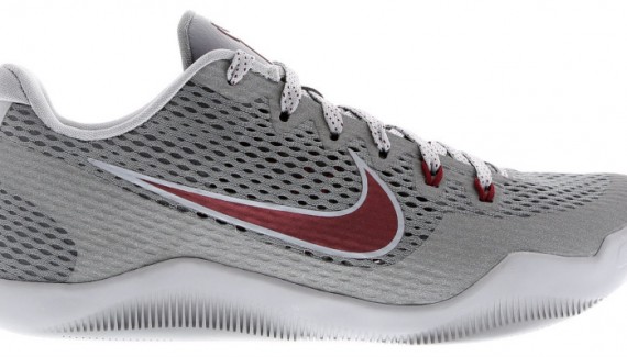 L’association gris/blanc/rouge foncé est un hommage au lycée de la star des Lakers. Un logo a également été ajouté au talon.