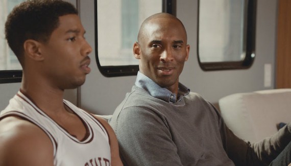 Assis aux côtés de Michael B. Jordan, Kobe Bryant fait la démonstration de la reconnaissance vocale dans l’Apple TV. Mais voilà, l’acteur de Creed n’est pas là pour jouer Kobe jeune mais… au soir de sa carrière.