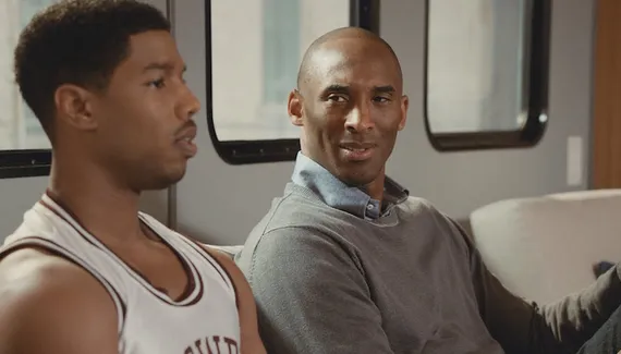 Assis aux côtés de Michael B. Jordan, Kobe Bryant fait la démonstration de la reconnaissance vocale dans l'Apple TV. Mais voilà, l'acteur de Creed n'est pas là pour jouer Kobe jeune mais… au soir de sa carrière.
