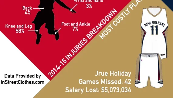 Et puis, comme un signe avant-coureur de la saison poissarde à venir, le rookie Bryce Dejean-Jones s'est cassé le poignet droit quelques jours seulement après avoir signé son premier contrat de trois ans en NBA. S'en est suivie une incroyable cascade de blessures plus inévitables que malchanceuses, telles celles de Norris Cole à la cheville, survenue lors d'un entraînement. Récemment on apprenait également que leur superstar, Anthony Davis, opéré du genou, joue depuis trois ans avec une épaule gauche blessée (déchirement du labrum).