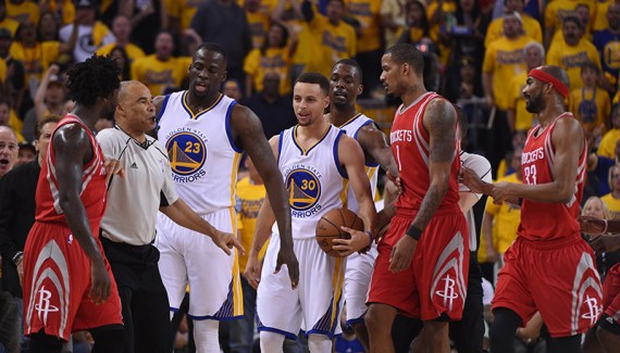 James Harden limité à 4 points à la mi-temps, et n’ayant même obtenu aucun lancer franc dans le match (une première depuis janvier 2015), les Texans ont rapidement été distancés. La sortie du MVP, obligé de retourner au vestiaire en début de deuxième mi-temps, les a relancés quelques minutes, le temps de revenir à 15 points. Mais Golden State a ressorti les barbelés, posé quelques systèmes et n’a finalement jamais tremblé de la rencontre.