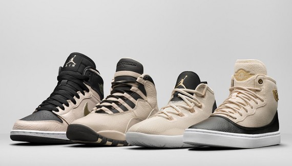 Le cuir est à l’honneur avec des versions beige et noir des Air Jordan 1, Air Jordan X, Reveal et Jasmine. Visuellement, c’est une réussite, avec une ambiance luxueuse renforcée par quelques touches dorées.