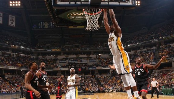 À la mi-temps, Ian Mahinmi (11 points) a déjà battu son record de points sur un match de playoffs et George Hill compte 14 points à 100% de réussite. La défense des Pacers a muselé Demar DeRozan (4 points à 2 sur 8 et 3 balles perdues) et Kyle Lowry, même si ce dernier a profité des dernières minutes du deuxième quart temps pour atteindre la barre des 10 points.