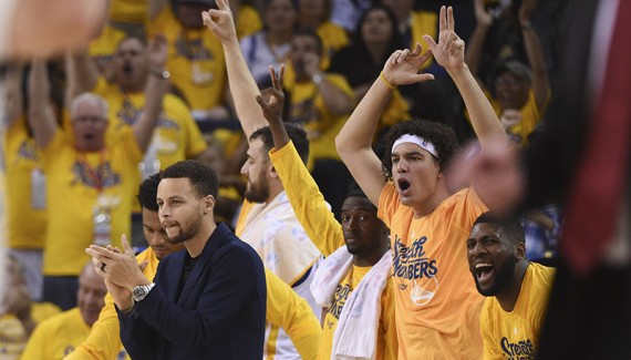 Dans une Oracle Arena toute de jaune vêtue, les Blazers sont accueillis par un Klay Thompson bien décidé à compenser l’absence de son “Splash Brother”. L’arrière marque 12 points en moins de six minutes et, à l’instar des Spurs hier, les Warriors débutent sur un nuage (18-4). À l’exemple du contre monumental d’Andrew Bogut sur une tentative de dunk de Mason Plumlee, ce sont leur intensité et leur activité défensive qui font la différence. Portland termine le quart temps à 17 points, à 5 sur 21 aux tirs, alors que Thompson en est déjà à 18 unités, à 7 sur 10 (37-17).