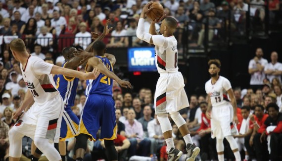 “C’était Stephen Curry déguisé en Damian Lillard”. C’est ce qu’auraient pu déclarer Steve Kerr ou Draymond Green à propos de la performance de Damian Lillard dans la 3e manche. Auteur de 40 pts et 10 pds dans la victoire de Portland, le meneur All-Star a multiplié les tirs à 3-points dans toutes les positions. Même avec des défenseurs sur le nez. Même largement derrière la ligne, et à l’arrivée, il décroche un record de franchise avec 8 réussites sur 13 tentatives.