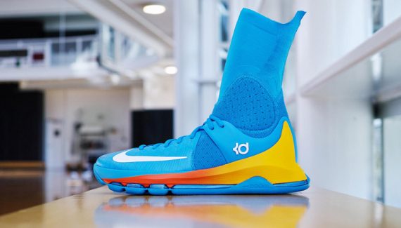 Forcément, les couleurs sont celles du Thunder. Mais cette chaussure s’accorderait aussi très bien avec les maillots des Chargers, l’équipe NFL de San Diego, qui utilise aussi très souvent ce “powder blue.”
